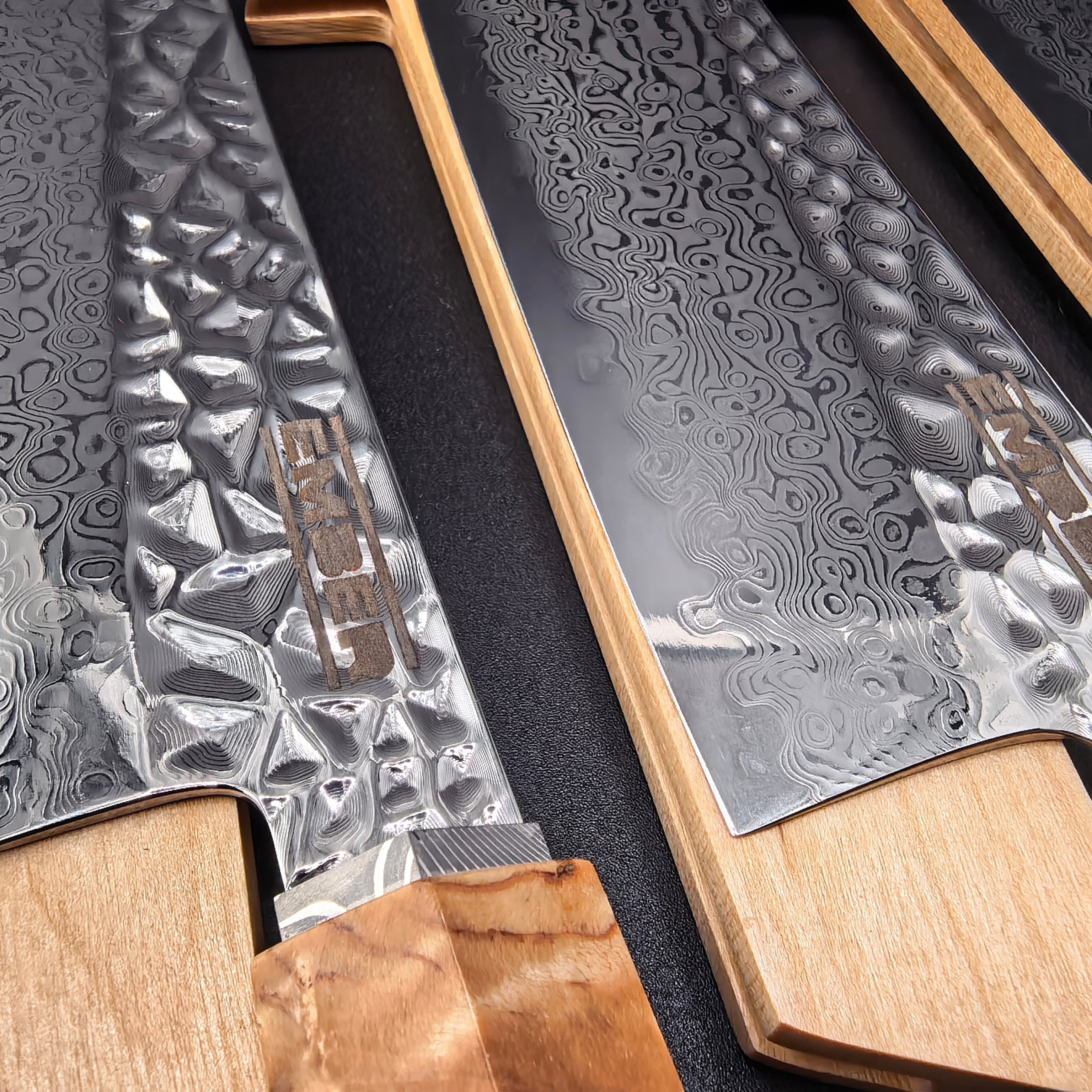 Acero AUS10 + 67 capas de Acero de Damasco – Un acero inoxidable de alto rendimiento, reconocido por su equilibrio perfecto entre dureza, filo y resistencia.