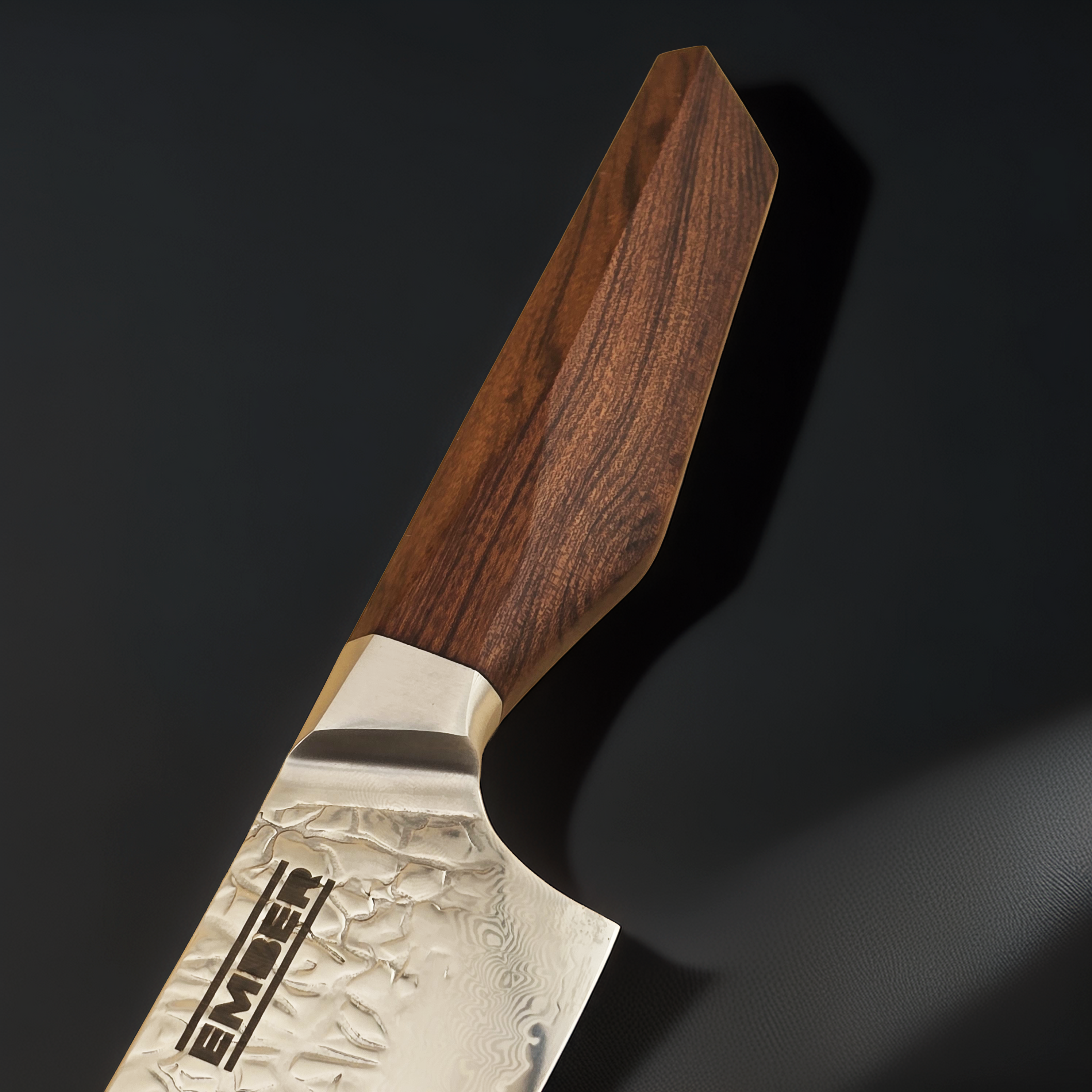 Acero AUS10 + 67 capas de Acero de Damasco – Un acero inoxidable de alto rendimiento, reconocido por su equilibrio perfecto entre dureza, filo y resistencia.